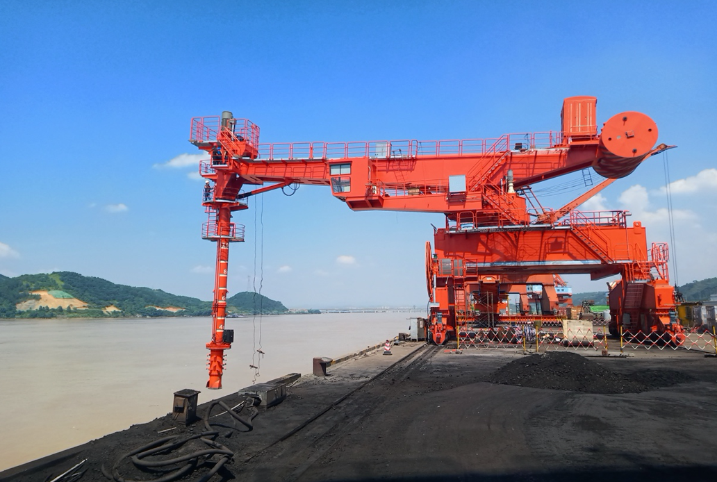 湘江之畔,華新機電大唐華銀株洲項目抓斗橋式卸船機近日完成首船接卸。